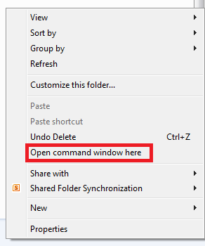 I’ve discovered a very handy trick: How to open a Command Prompt Window from any Windows directory. All you have to do is in any directory hold down the shift key whilst no directory items are selected and right click. One of the context menu options will be ‘Open Command Window Here’. A Command prompt window will open with the current directory set to the directory from which it was initiated. No more cd (change directory) commands needed.