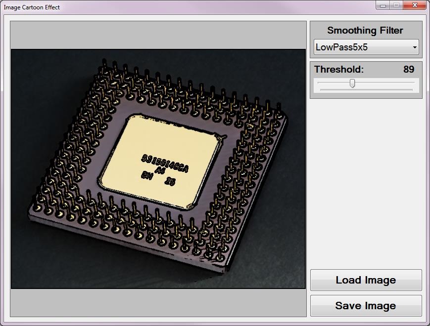 • Loading and Saving Images – Users are able to load source/input from the local system by clicking the Load Image button. Clicking the Save Image button allow users to save filter result .