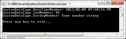 Console.WriteLine("CustomDataType.DateTimeMember: "  + objectData.DateTimeMember);